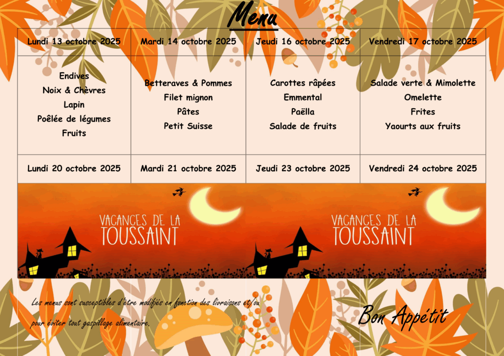Menus du Restaurant scolaire du 13 au 17 octobre