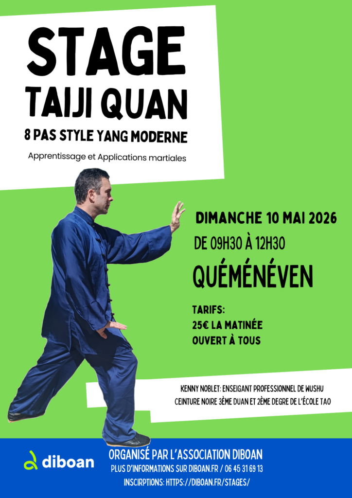 L’association DIBOAN vous propose une matinée dédiée au TaiJi Quan style Yang moderne, accessible à tous. Au programme : l’apprentissage du 8 pas, une forme courte et progressive, ainsi que ses applications martiales pour mieux comprendre le sens des mouvements et enrichir votre pratique.